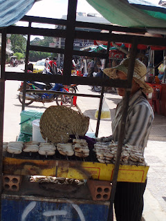 Street stalls selling grilled banana